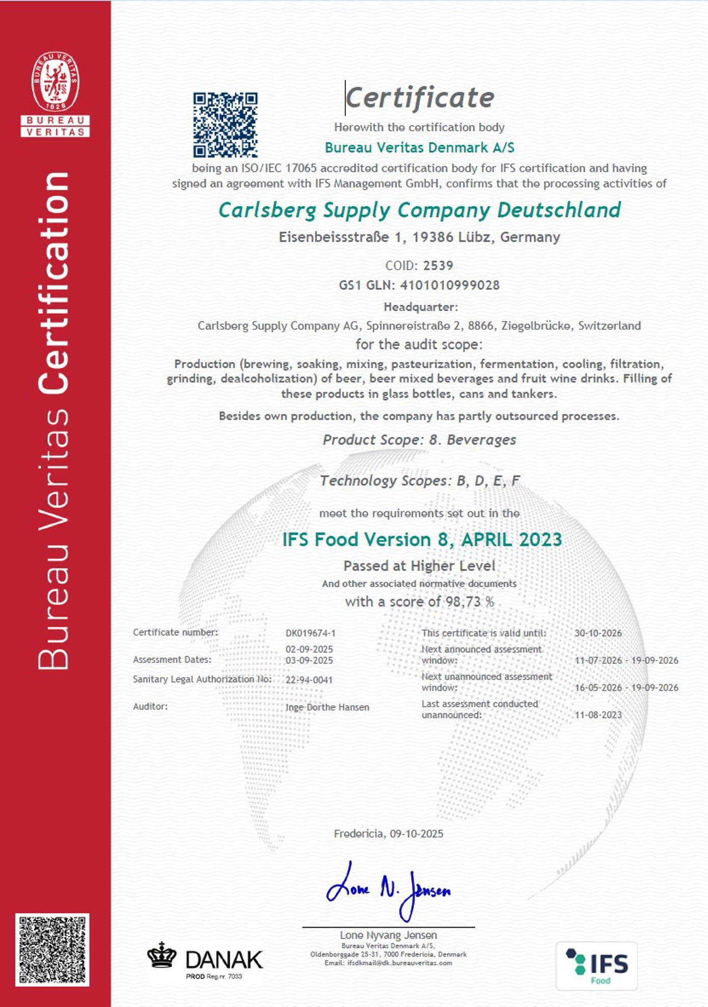 Lebensmittelhygiene und Lebensmittelsicherheit spielen in der Philosophie von "Lübzer" eine bedeutende Rolle. Deshalb erfüllen wir die Anforderungen des "International Food Standard".